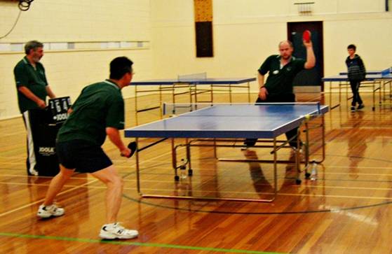 The Karori Club finished off its 2011 season on the 21st of November. On the night the club watched the Senior A Grade Singles final between Frank Su, previous 3 times Senior Champ, squaring off against first time finalist Tim Hills. Frank prevailed in 3 games: 8, 6, 6. Below a photo of action in the 3rd game, with club president Roger Watkin officiating and junior Matt Carmichael in the background acting as a ball chaser.