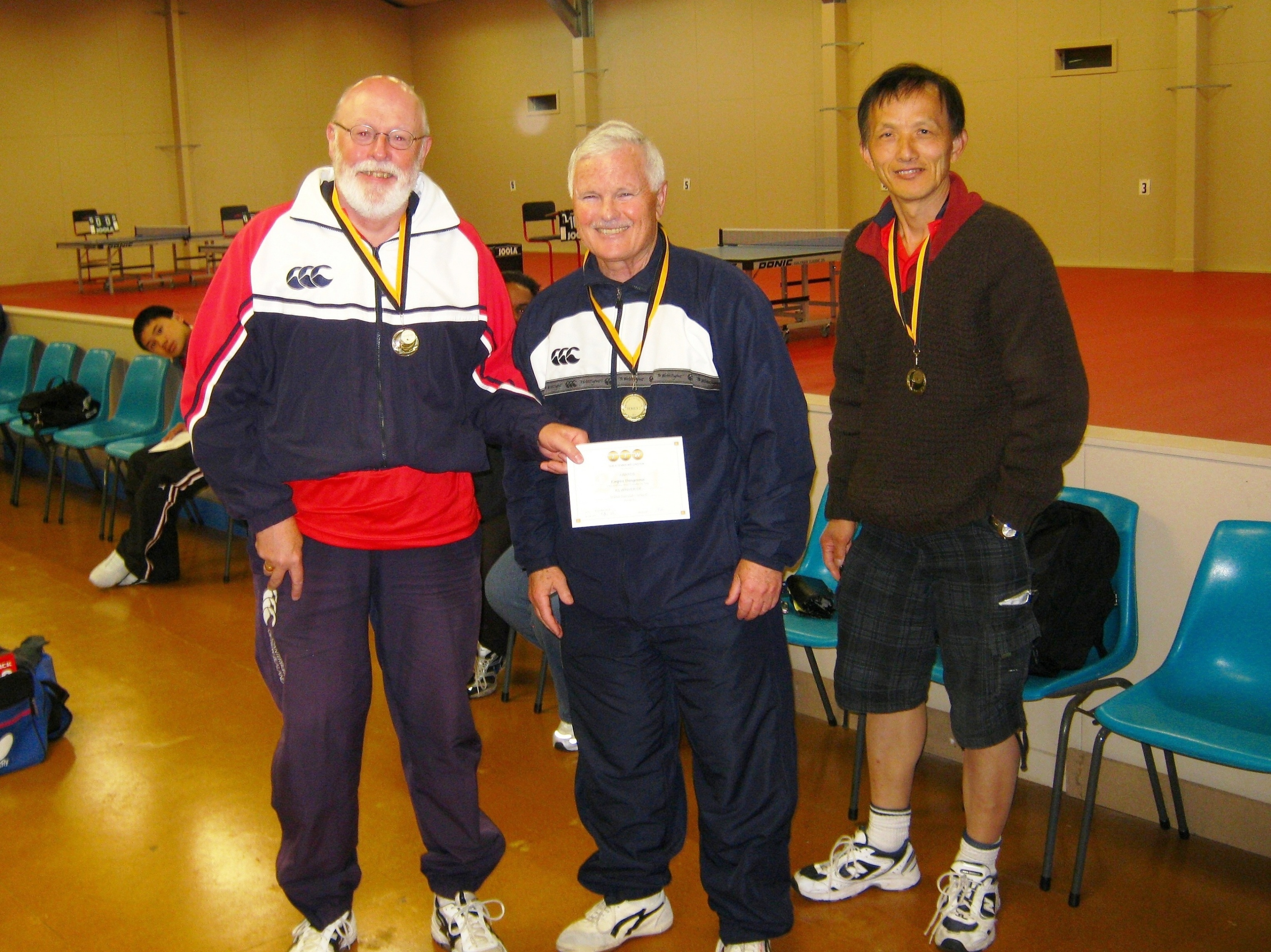 The then Canterbury Table Tennis Hall needed substantial repairs and planning permission for this would not be approved as it was in a residential area. Eddie with Keith Armstrong and Ron Fleming became involved in the purchase of the former Yates Seed Store(1999) for table tennis. They with Denver Glass, Neville Duggan and Brian Wilson were the driving force behind the conversion of the building into the current Table Tennis Canterbury Stadium (294 Blenheim Road), opening in early 2000. The six were presented with an appreciation medal by Table Tennis Canterbury. Eddie was further recognised for his endeavours by being made a Life Member of Table Tennis Canterbury and receiving a Summer Sports Award from Sport Canterbury in 2000. He was Table Tennis Canterbury Sportsperson of the Year (2002). Eddie returned to Wellington in 2003 and was responsible for running the Empire Midweek club, with Lois McStay, until 2009. He was awarded the Dick Gray Cup for Best Empire Club Member (2008) and the Empire Table Tennis Cup for Most Outstanding Performance(2009). There is a volunteer profile on Eddie in the Empire Spin Newsletter (August 2008).