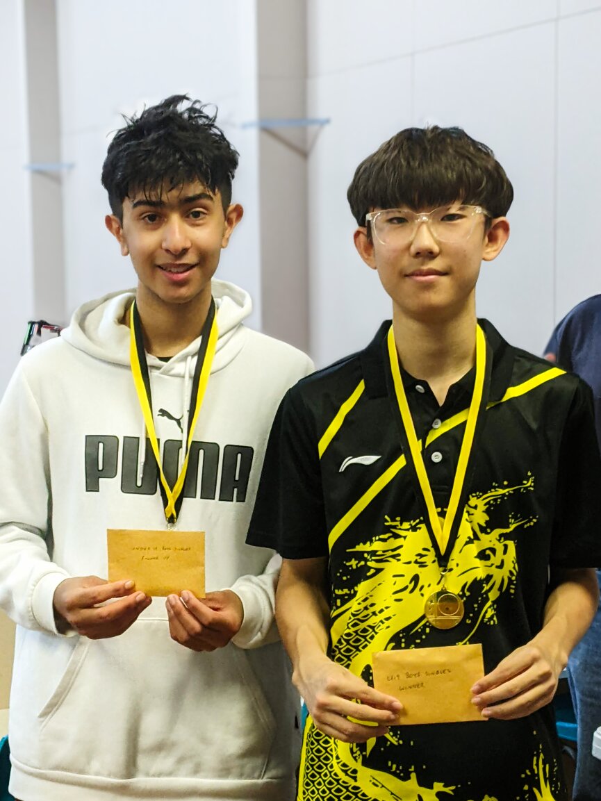 Yufeng had especially notable success also in the individuals with Silver in the B Grade Mens Singles. Yufeng partnered with Ashkay Aneesh (Manawatu) to win another silver in the B Grade Mens Doubles and (joint) bronze in the U19 Boys Doubles.